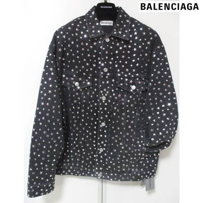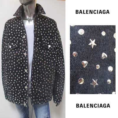 バレンシアガ BALENCIAGA メンズ アウター ジャケット デニムジャケット ユニセックス可 マルチスタッズ(ドット/星/ハート)・ネック部分ロゴ付きデニムジャケット 黒 625990 TBP47 1052 (R218900) 02A 2020年秋冬新作【送料無料】 【smtb-TK】