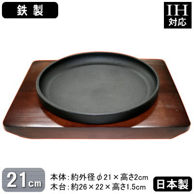 他のサイズのスタッキングステーキ皿はこちら! ステーキ皿のラインナップはこちら! 【商品仕様】 ●サイズ/鉄板:約外径210×高さ20mm・約内径201×深さ16mm、 木台:約幅260×奥行220×高さ15mm、底板厚約4mm ●本体重量/約1200g ●材質/鉄板:鉄鋳物、木台:天然木 ●日本製※IH電磁調理器・ガス火対応 ※木台の色は生産時期によって多少異なる場合があります。